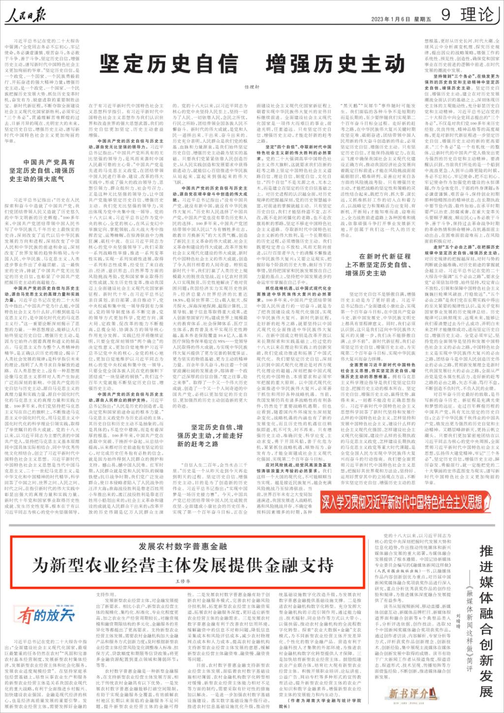 2023年1月6日,海角 王修华教授在《人民日报》理论版发表文章“发展农村数字普惠金融 为新型农业经营主体发展提供金融支持”。