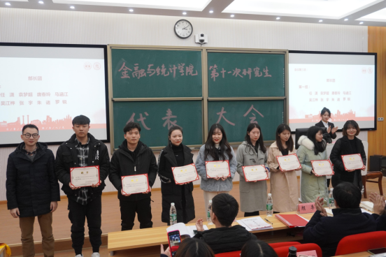 11月24日下午3时,海角 于财院校区二教101召开第十一次研究生代表大会,各年级硕博研究生代表团参与大会,学院党委副书记颜李老师、学院团委书记范玉康老师及研究生辅导员周斌老师受邀出席。会议由孟雅婷同学主持。