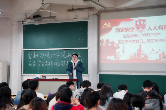 4月18日晚,海角 在财院校区二教501教室举办研究生国家安全教育日主题教育讲座。本次活动由研究生辅导员周斌主讲,学院三百余名研究生参加。