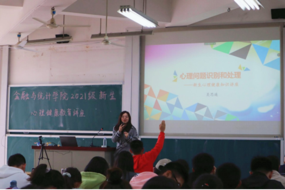 海角 于二教402、502举行了 “心理问题识别和处理”新生心理健康教育主题讲座,本次讲座为主会场+分会场模式,由校心理中心老师吴思遥主讲,辅导员张宇、21级全体本、研新生参会。