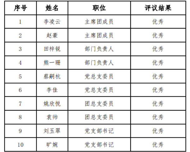 评议结果表(部分)