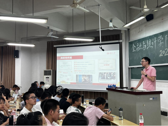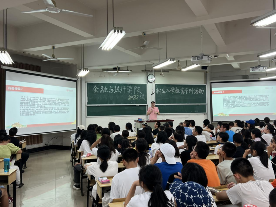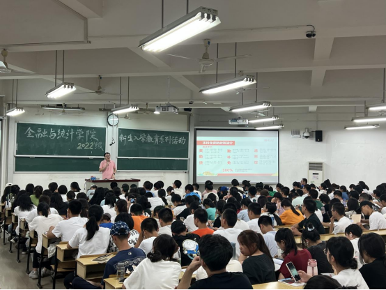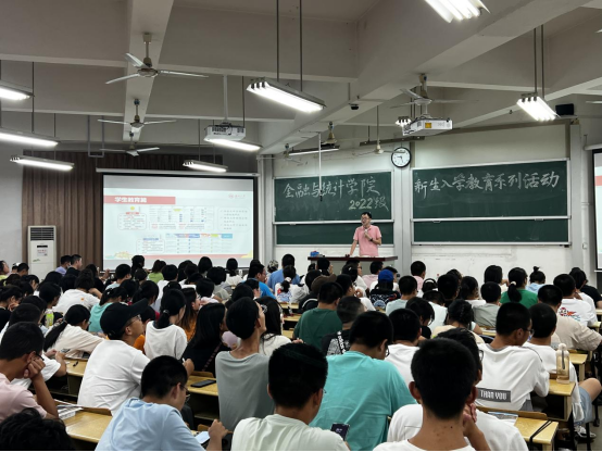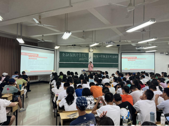 9月13日晚,海角 于财院校区第二教学楼举办2022级新生入学教育系列活动之“学生培养与日常事务主题讲座”,辅导员周斌主讲。
