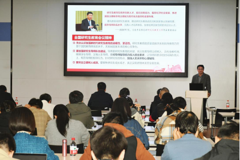 黄红立围绕《学习全国教育大会精神在教育强国建设中挺膺担当》进行报告。他指出教育是强国建设、民族复兴之基,建成教育强国是实现以中国式现代化全面推进强国建设、民族复兴伟业的重要任务。为实现教育强国的战略任务,必须聚焦立德树人根本任务,全面提高人才自主培养质量。他强调教师在教育强国建设中的重要作用,提出教师要做“有理想信念、有道德情操、有扎实学识、有仁爱之心”的“四有”好老师,要做学生锤炼品格、学习知识、创新思维、奉献祖国的“四个引路人”,要坚持“教书和育人相统一、言传和身教相统一、潜心问道和关注社会相统一、学术自由和学术规范相统一”的“四个相统一”。黄红立号召全体研究生导师以身作则,以实际行动践行教育家精神,为培养高素质专业化的教师队伍,推动教育强国建设贡献力量。