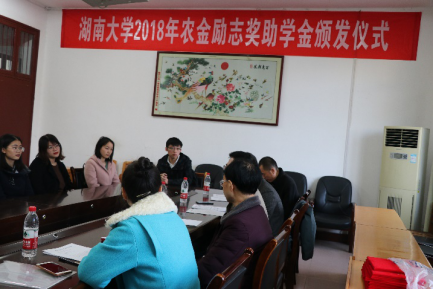 2018年11月23日下午,农金励志奖助学金颁发仪式和座谈会在海角 财院校区行政楼315会议室举办,参加本次会议的有海角 党委书记聂国军老师、党委副书记刘周平老师、院长助理段进老师、海角 教育基金会刘垠衫老师,校友代表唐若民先生,以及全体获得农金励志奖助学金的学生。