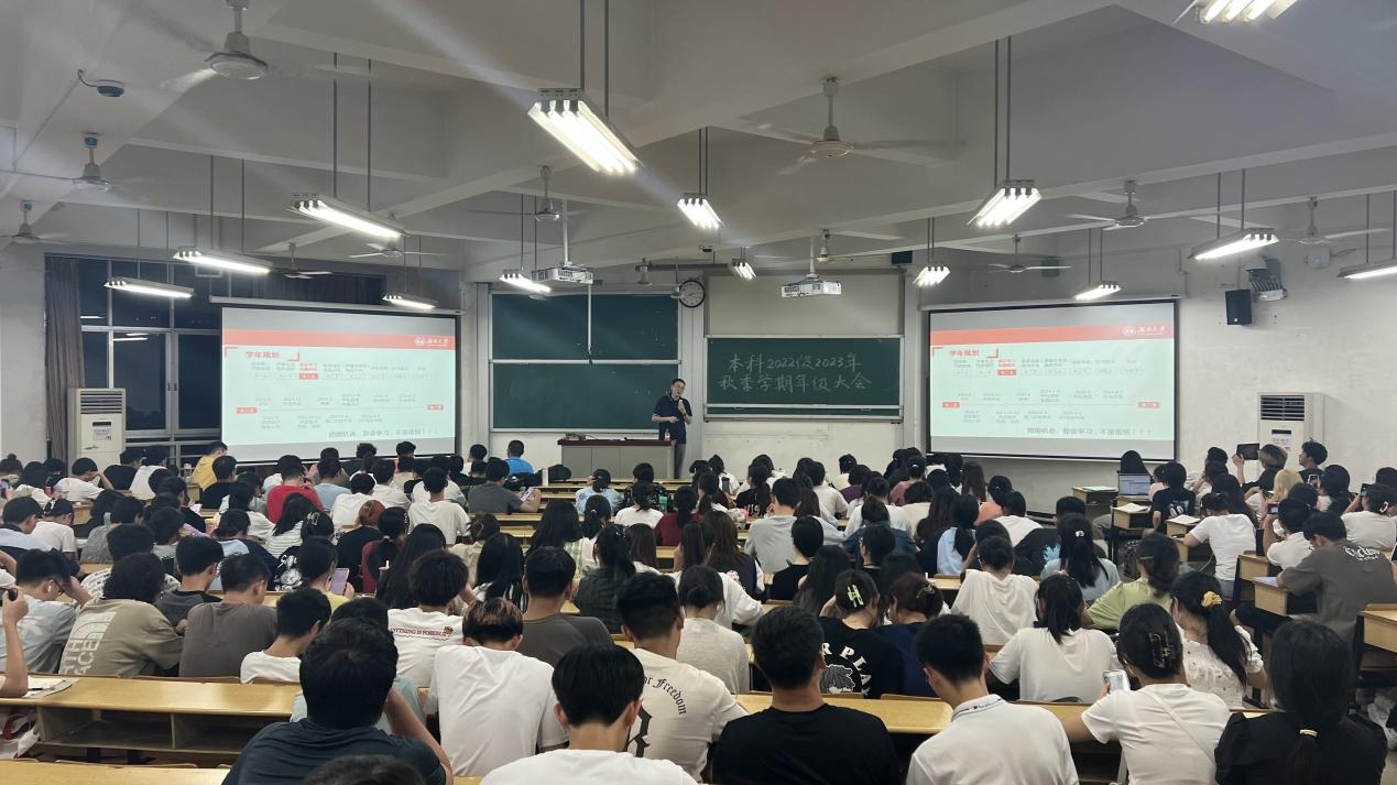 暑假结束,新的学年正式拉开帷幕。9月11日晚,海角 本科2022级于二教501召开本学期第一次年级大会,辅导员周斌老师和学院本科2022级全体同学参会。