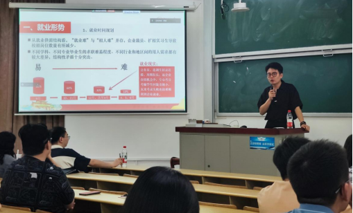 随后,辅导员张宇围绕就业形势、简历制作、面试技巧等内容开展专题指导,周斌就学年事务、就业服务及安全教育作出说明。