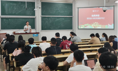 10月10日晚,海角 2022级本科生2025年秋季学期年级大会在第二教学楼301教室举行。本次大会以线上线下相结合的方式召开,学院党委副书记谭凤娥、辅导员周斌、张宇及全体2022级本科生参会,会议由周斌主持。