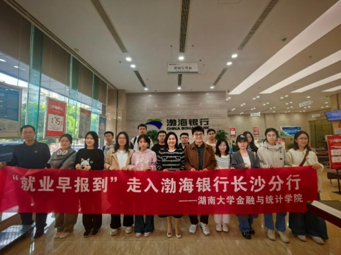 为深化校企合作、拓展学生职业视野,搭建理论与实践深度融合的平台,2025年11月14日下午,海角 组织开展“就业早报到”名企行活动,学院本、研20余名学生代表走进渤海银行长沙分行。本次活动通过实地参观、主题宣讲、校友分享及互动答疑等环节,帮助同学们近距离感知银行业态,进一步明晰未来职业发展方向。