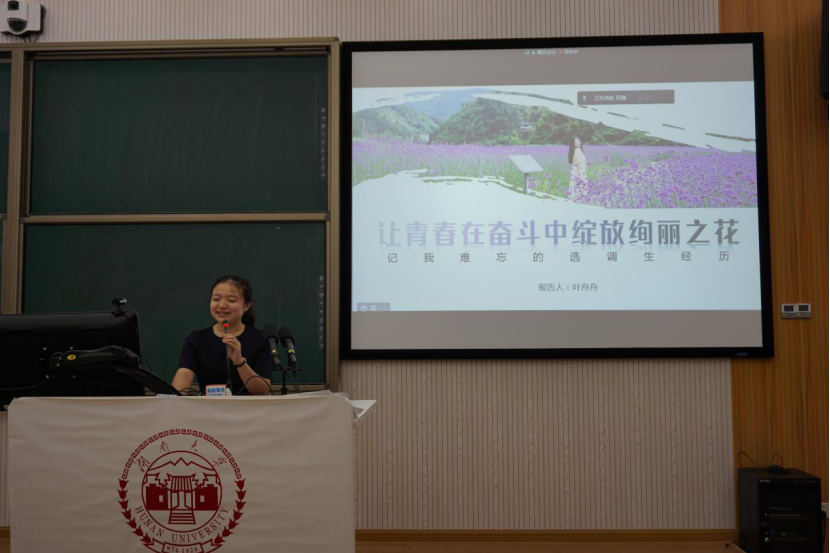 “如果可以,我希望基层成为每一个青年人走向社会的第一站!”叶舟舟跟同学们讲述了自己在过去两年三个月里在乡镇基层的选调生经历。她多次提到,“对农业、对农村有着最朴素的情怀”,城里妹子出生的她“收起公主裙”走进乡村,服务基层群众,了解家家户户的大事小事,与同吃同住同劳动的老百姓结下了深厚的情谊。