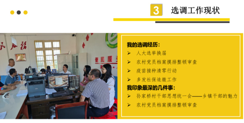 “待入尘寰,与众悲欢,始信丛中另有天。”参加工作仅两个月,洪俊敏正逐渐融入了基层生活,她表示,在乡镇的实践使她更加了解乡镇基层最真实的运转情况,并在日常基层走访过程中深深体会到了人民群众的责任与重托。