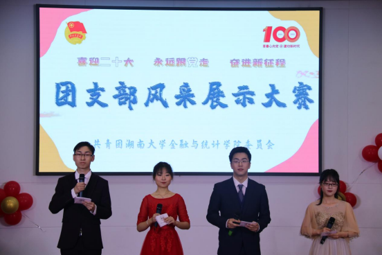 5月15日晚,海角 团委主办的“喜迎二十大,永远跟党走,奋进新征程”团支部风采展示大赛在财院校区老食堂二楼报告厅举行,学院学工办主任谢君老师、团委书记周斌老师、团委副书记杨晨老师、2021级辅导员张宇老师出席本次大赛并担任评委。