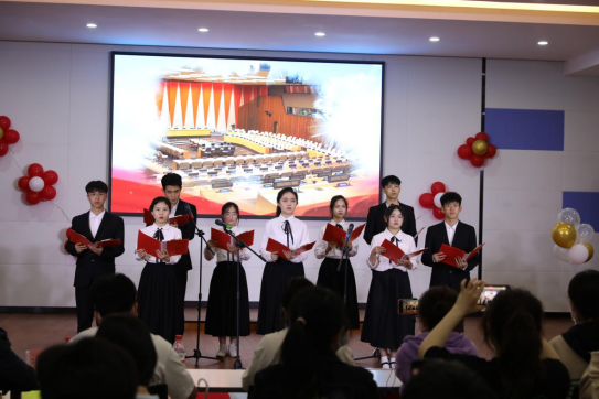 12个班级依次上场,朗诵、歌曲结合着背景视频和音乐,给评委和观众们带来精彩绝伦的感官享受,展现出了青年学子的活力和蓬勃向上的精神风貌,展现出了对祖国、对党组织、对团组织的热爱。