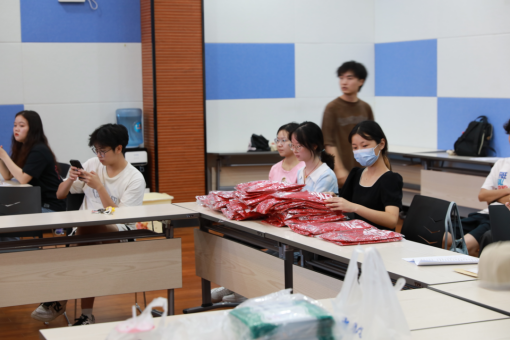 培训内容讲述完之后,向各位志愿者发放迎新过程中需要用到的帽子和袖标。