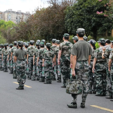 8月27日早上七点半,随着教官的一声哨响,财院校区2022级的新生们正式开始了军训拉练活动。学生以两路纵队出发,排头两名男生负责举旗。鲜红的旗帜彰显着气势,新生斗志昂扬,精神饱满,怀着满腔的热情。