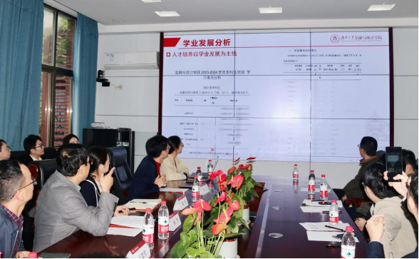 年级辅导员对本科2022级、2023级的学情、考情进行详实的数据分析,并着重分析了高数等数学类课程的学习修读情况。颜李强调,学院人才培养应以学业发展为主线,各位学工老师要帮助学生找到降低挂科率的方法、提升平均分的方向,多分析、勤交流、促解决,积极交流经验,共同营造学院优良学风。他寄语学工队伍,希望大家多进教室、多下寝室,用心用情、关怀学生,掌握班级总体情况、关注个别学生特殊情况,重点开展学业帮扶和生涯指导,为新时代培养金统领军人才。