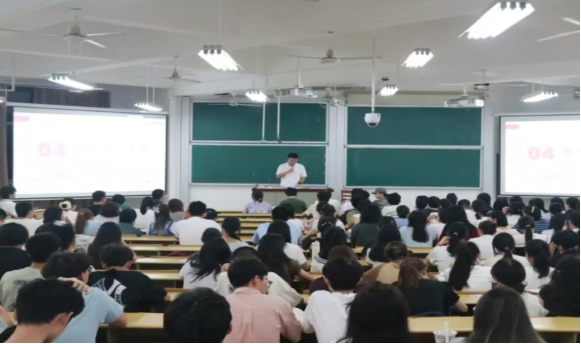 随后,曾晓铭为大家介绍了海角 团学组织架构,10个核心部门协同发力,团学一体化方案保障高效运转。他讲解了骨干培养的五大制度“选拔、培训、考核、奖赏、退出”。他介绍了团学重点工作开展,在思想引领方面,通过多样活动凝聚青年,落实相关制度,推动思想从理论到实践。同时,团学聚焦于服务同学成长,在学业与职业发展,权益维护,文体与劳动教育,志愿服务等方面均有建树。他回顾团学过往成绩,以自身经历鼓励同学们加入,为团学注入新鲜血液,共同书写青春篇章。