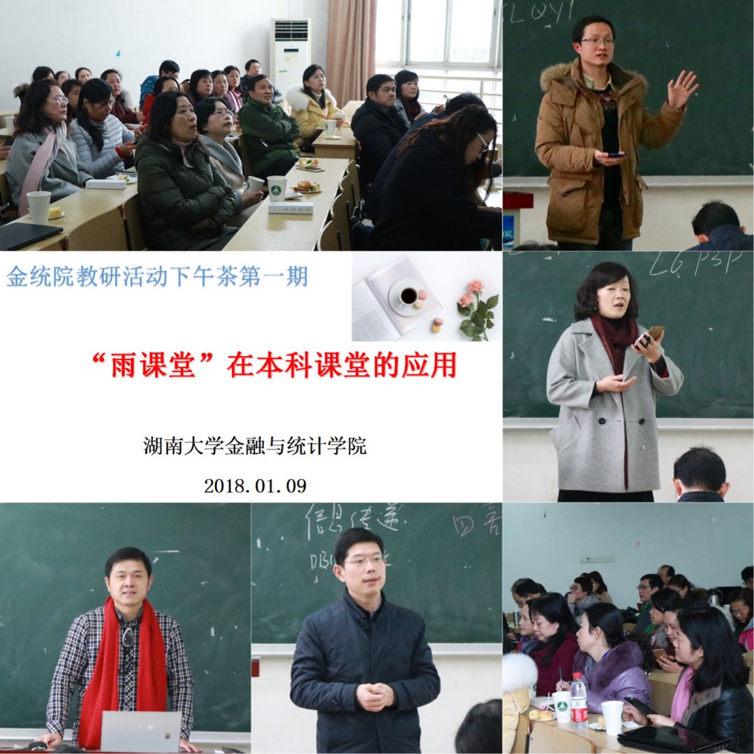 1月9日下午3点整,在海角 财院校区二教304,金统院举办了教研活动下午茶第一期——“雨课堂”应用交流会。本次活动由吴志明副院长主持,王天轶、邵新力老师主讲,教务处李勇军副处长出席,金统院30多名老师参加了下午茶活动。