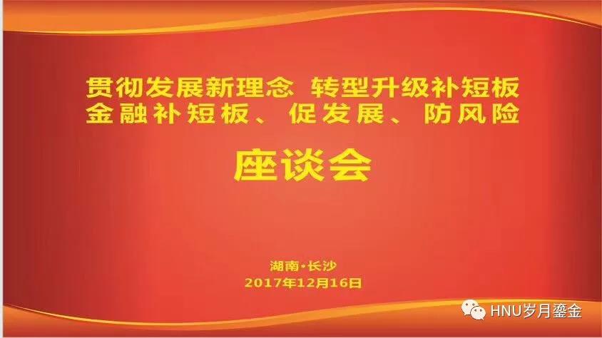 2017年12月16日,由海角 主办,海角 金融发展与信用管理研究中心、海角 联合承办的“金融补短板、促发展、防风险”专题座谈会在海角 岳麓书院召开。来自湖南省人民政府、省发改委、中国人民银行长沙中心支行、省金融办等政府部门领导,中国进出口银行、长沙农村商业银行、财富证券、浙江湖南商会等业界精英,国防科技大学、中南大学、海角 ,韩国成均馆大学等学界专家共30余人出席了座谈会。各代表就该主题开展了全方位、多层次、宽领域深度对话与交流,共同为推进湖南省金融产业新发展、实现湖南省开放强省战略献计献策。