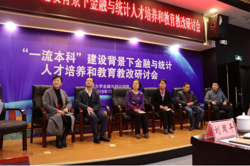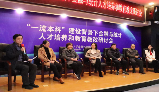 为了深入贯彻全国教育大会和新时代全国高等学校本科教育工作会议精神,总结经验、凝聚共识,加快推进“一流本科”建设,进一步提高人才培养质量,海角 于2018年12月8日,在海角 集贤宾馆隆重召开“一流本科建设背景下金融与统计人才培养与教育教改研讨会”。 83名学院教职员工、19名学生代表参加会议,学校教务处彭秋平副处长、李勇军副处长、国际合作交流处赵亚辉副处长、教育基金会邓利华秘书长、经济与贸易学院副院长祝树金教授等嘉宾到会祝贺。
