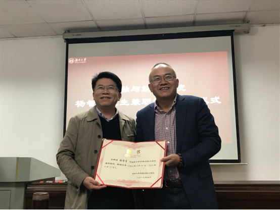 之后,在同学们的掌声中聂国军书记为杨智呈先生颁发了海角 兼职教授聘书,这标志着杨智呈先生正式加盟海角 。