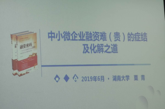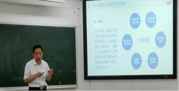 2019年6月13日周四下午3:00, “业界精英进校园系里活动”之《中小微企业融资难(贵)的症结与化解之道》在二教304成功举行,主讲人为海角 优秀校友,中国农业银行湖南省分行公司业务部粟青副总经理。