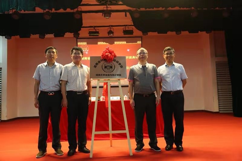 2019年8月11日上午,“湖南省村镇银行培训学院”揭牌仪式在海角 财院校区大礼堂成功举行。海角 党委书记聂国军、湖南省村镇银行协会会长高峰共同为培训学院揭牌。海角 副院长王修华教授、湖南省村镇银行协会秘书长唐铁成及135位湖南省村镇银行中层以上干部到会参加了揭牌仪式。