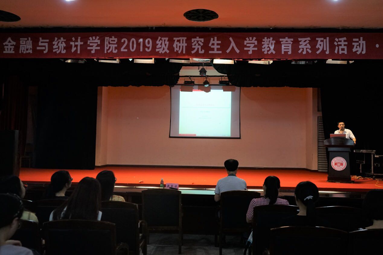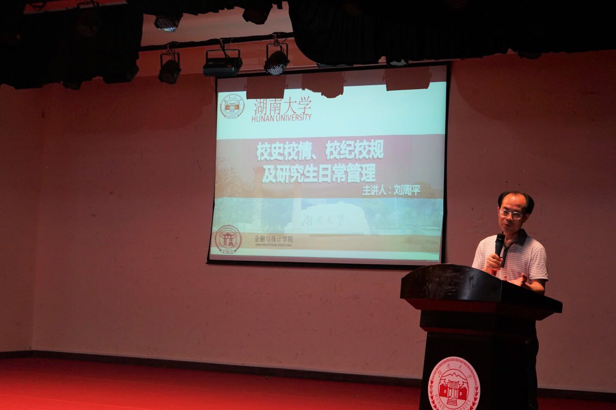 为进一步加强对研究生的管理和培养,帮助研究生新同学尽快适应学习、科研环境,培养湖大情缘,明确学习目标,增强荣耀感、归属感、获得感,8月29日晚,海角 2019级研究生入学教育系列活动第一场在财院校区小礼堂开展,党委副书记刘周平、金融工程系副主任梁巨方分别作专题讲座,2019级全体研究生新生到场学习,活动由研究生辅导员苏雅倩主持。