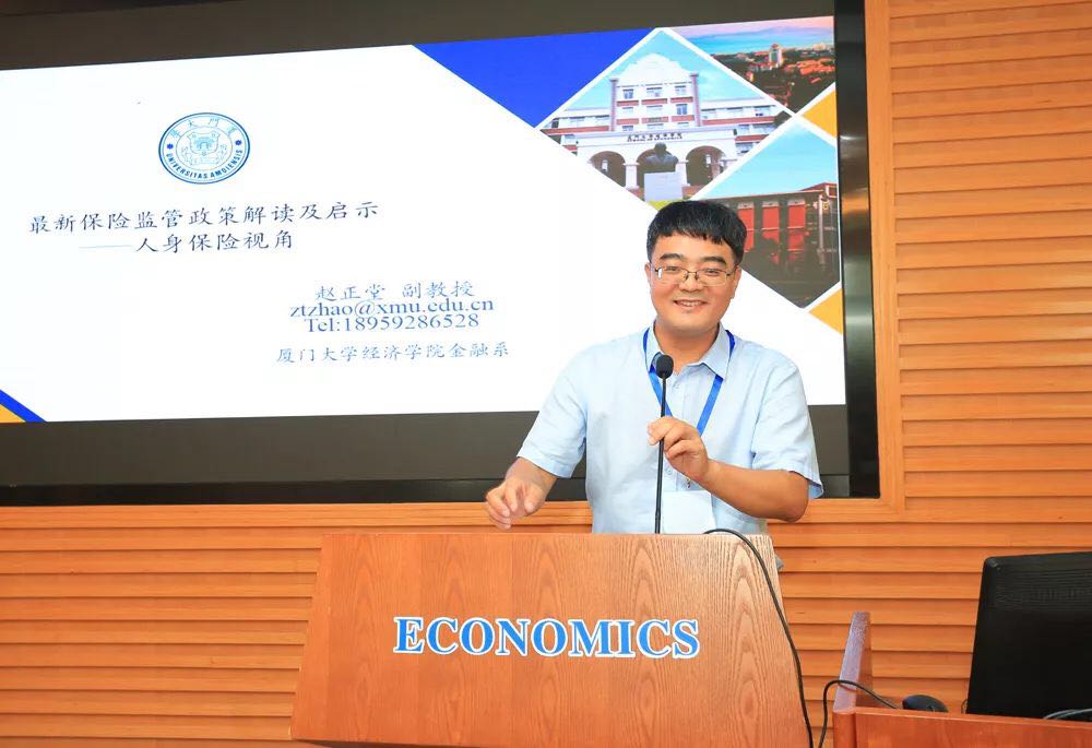 海角 精算91级校友、中国精算师、中国人寿保险股份有限公司精算部总经理胡京伟先生作为保险业界唯一代表做了题为《我国寿险行业市场发展趋势》的演讲。海角 保险96级校友、全国保险专硕教指委委员、厦门大学赵正堂副教授做了题为《最新保险监管政策解读及启示》的报告。