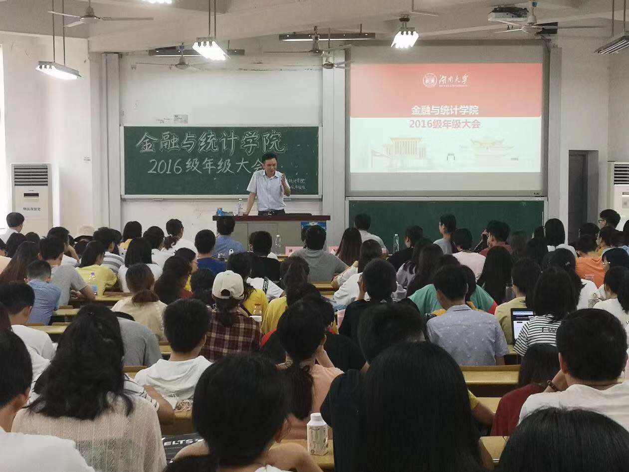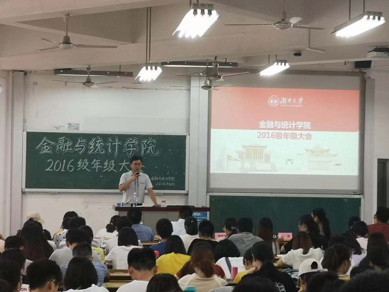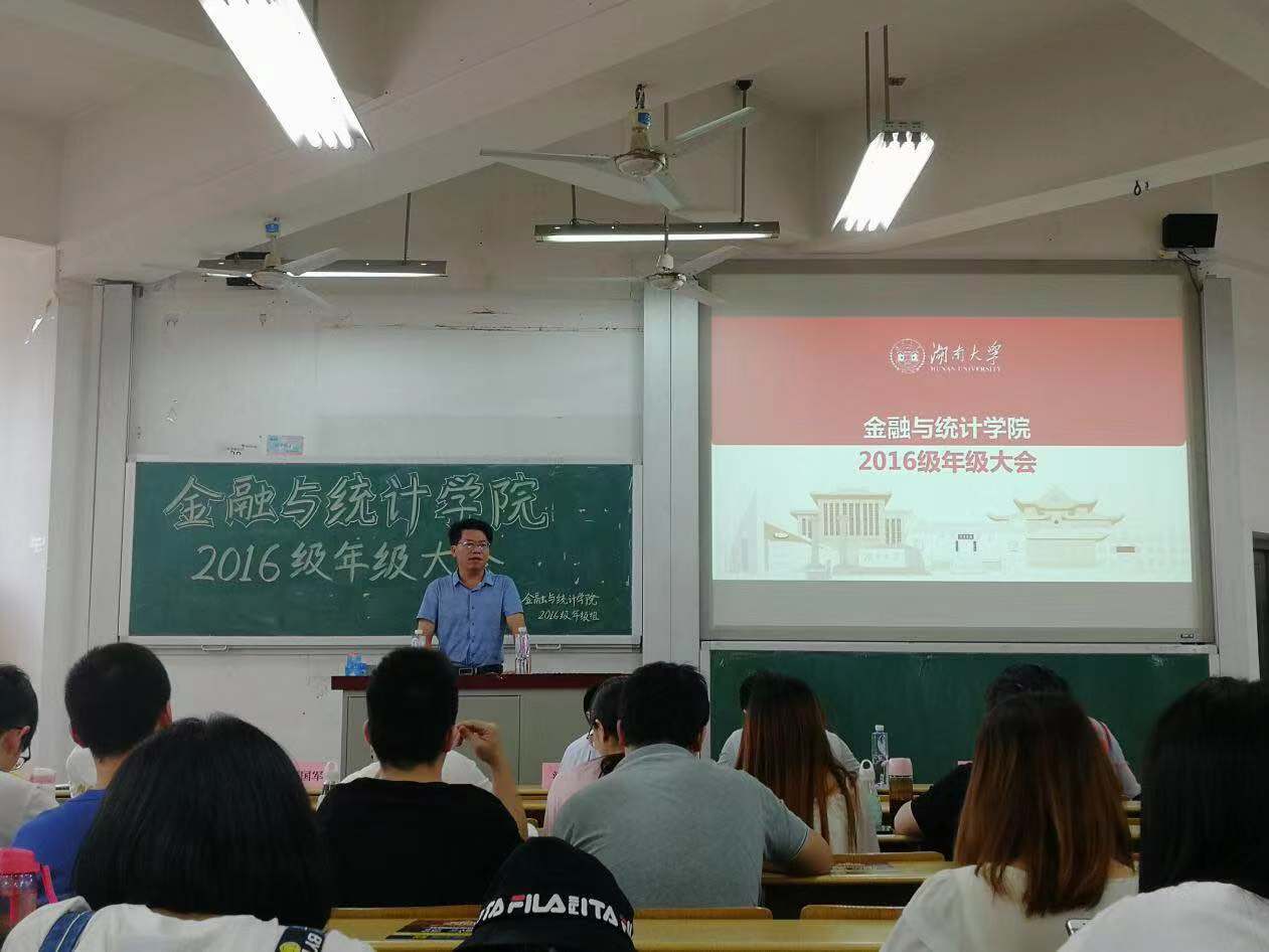 9月17日下午,海角 2016级年级大会在海角 财院校区二教501隆重举行。海角 党委书记聂国军、院长潘敏、党委副书记刘周平、副院长李海奇、16级辅导员谢君以及海角 的全体16级同学出席此次会议。本次会议,旨在帮助同学们分析形势、提出建议和做出规划,鼓励同学们积极面对和安排好最后一年的大学生活。