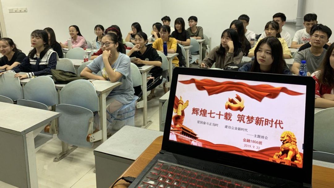 2019年是中华人民共和国成立70周年。为热烈庆祝该重要节日,营造爱国爱校的浓烈氛围,引导同学们牢记青年使命,勇担时代重任,金融1806班响应学校和学院的号召,以“爱国奋斗正当时,建功立业新时代”为主题,于2019年9月22日晚召开主题团日和主题班会活动。