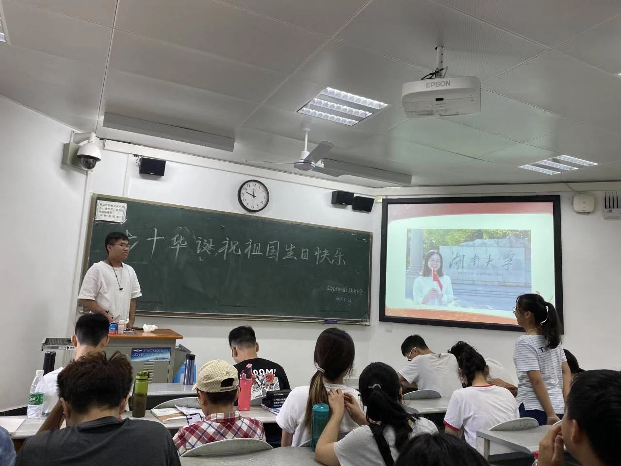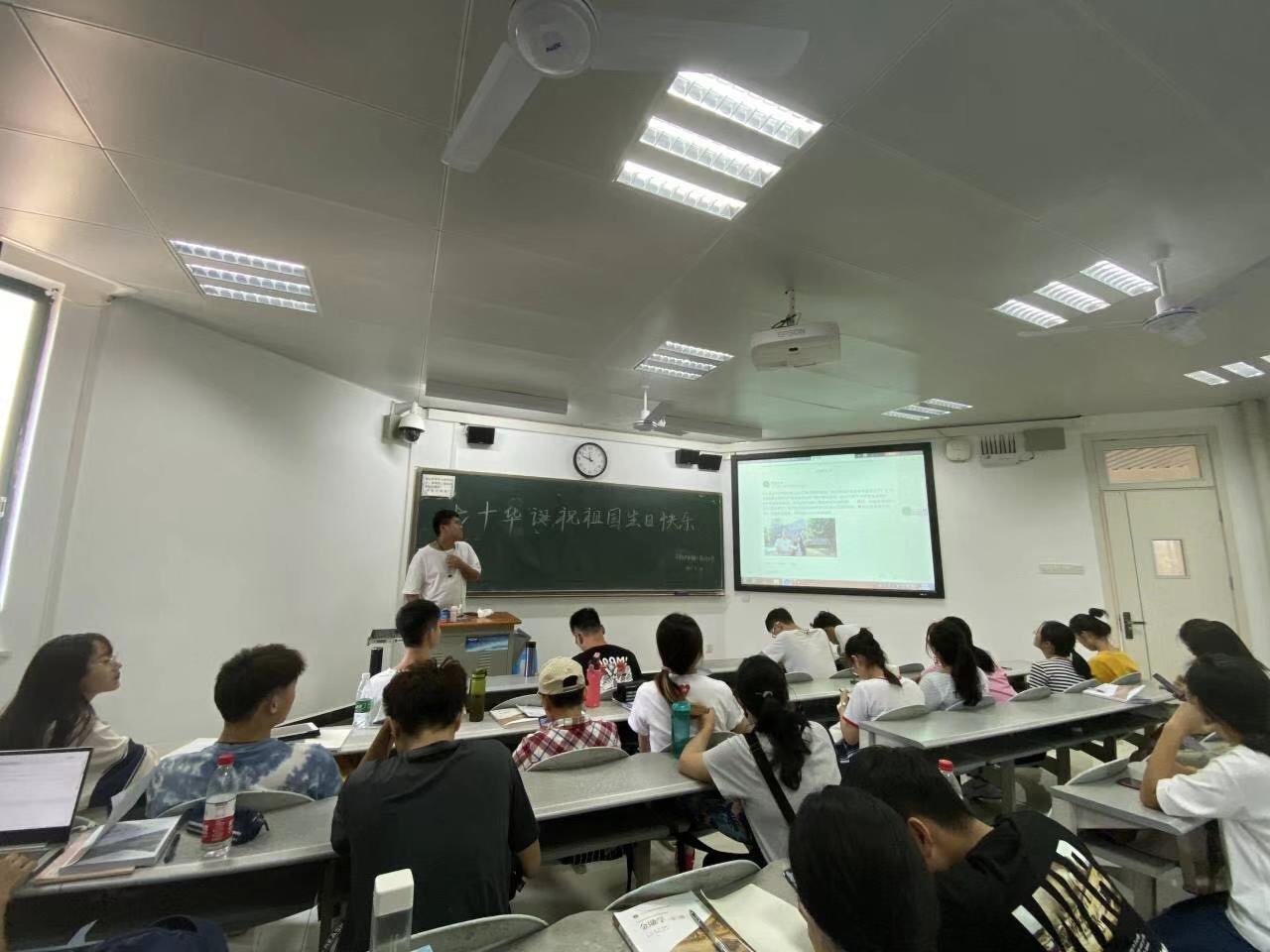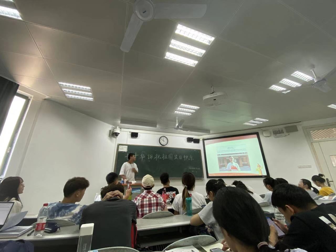 9月27日(星期五),金融1808班在海角 财院校区水教305组织举办了庆祝中华人民共和国成立七十周年主题班会。整场班会均以新中国七十周年华诞为主题,围绕祖国的发展繁荣进行了分享与探讨。