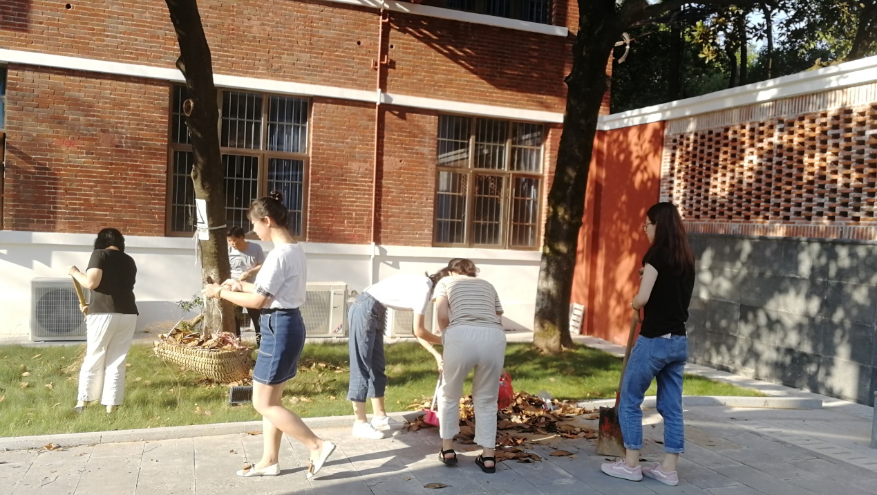 全体党员在炎炎烈日下,有的扫把清理落叶,有的铲垃圾,还有的搬运垃圾。每个人的脸上都挂满汗水,但大家热情不减,干劲十足,精细劳作。在清扫完园区的落叶之后,在攻坚不好清理的死角,大家不怕脏、不怕累,弯腰用手捡,展现了党员干部良好的精神风貌。