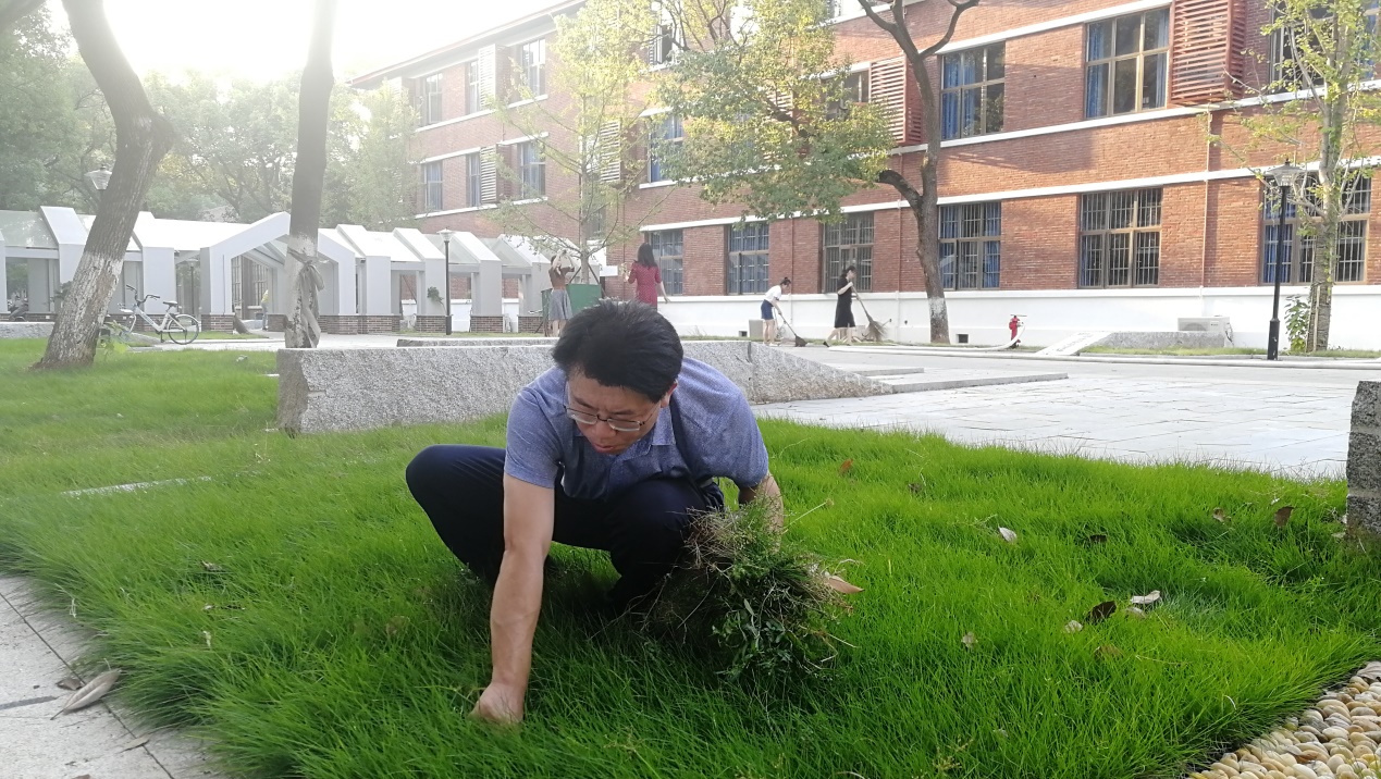 清理完卫生之后,大家开始清理花园中的杂草,聂书记边和大家一起劳动,边给大家讲述了自己曾经农村求学的故事,并向大家强调:不论何时,我们都应牢记初心使命,劳动愉快,劳动光荣。