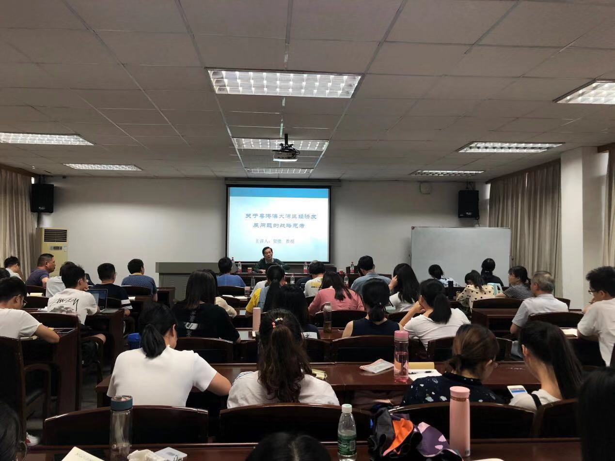 2019年9月28日下午,金融与统计论坛第233期在海角 财院校区行政楼301报告厅隆重举行,此次讲座题为《关于粤港澳大湾区经济发展问题的战略思考》,由全国哲学社会科学专家咨询委员会委员、第十一届全国人大常委、财经委员会副主任、贺铿教授主讲,海角 党委书记聂国军作开场介绍,他对贺教授对学院学科发展的热情关心和大力支持表示衷心的感谢,海角 财院校区党工委副书记晏艳阳教授主持。