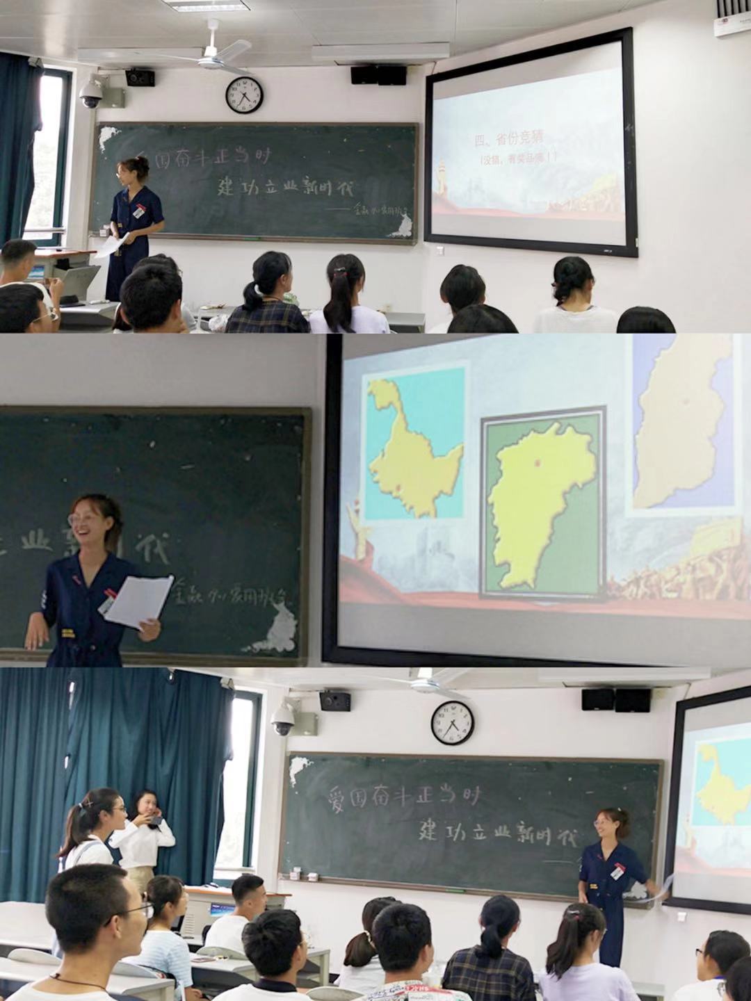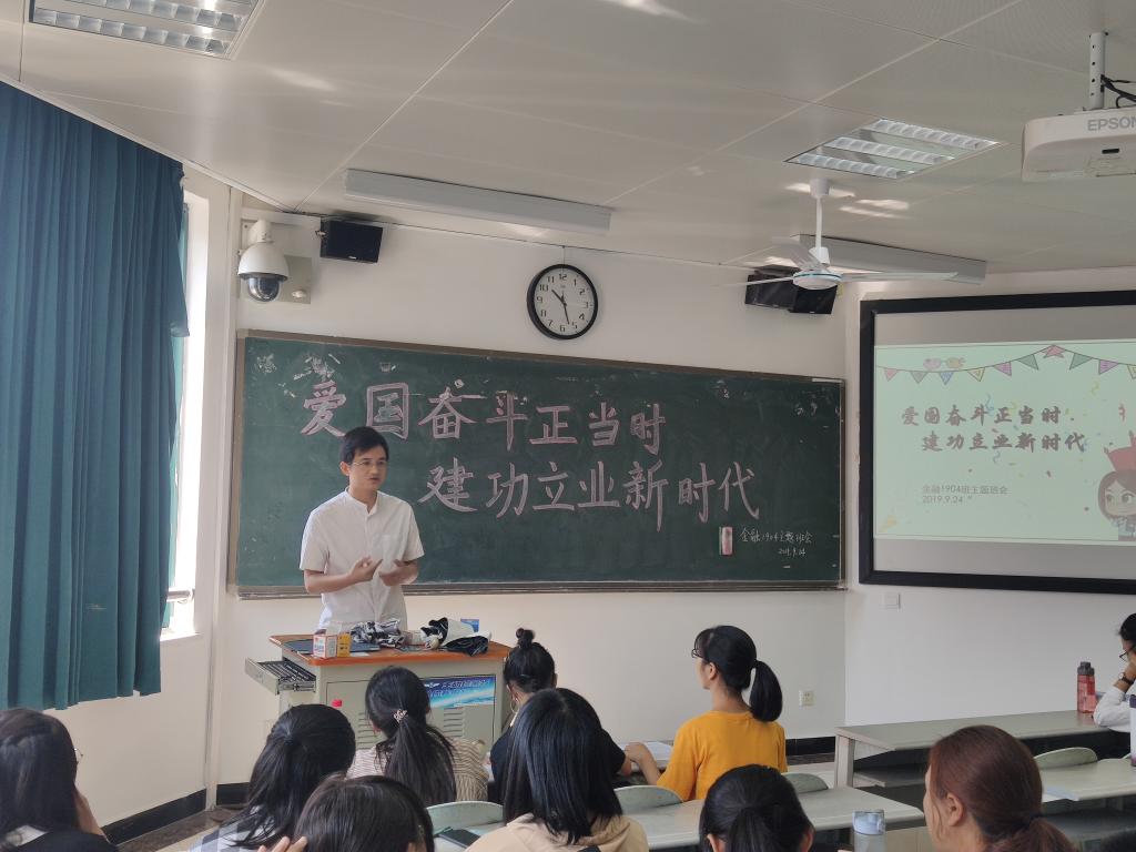 4个班级团支部召开了主题班会。金融1901班专门安排了诗朗诵环节,卢开同学为大家诵读他亲自为祖国创作的诗歌;设置了有奖问答环节,同学们在省份地图竞猜中进一步了解华夏大地山川河流波澜壮阔的美丽,体会祖国大好河山的雄伟与壮丽;在红歌竞猜环节中重温祖国革命征程的悠扬岁月,认识安宁美好生活的来之不易。金融1904班团支部在会中邀请到了班主任李昌帅老师,他结合班会主题向同学们讲述中国发展的历史,教导同学们努力学习,将来成为国家栋梁,为祖国效力。