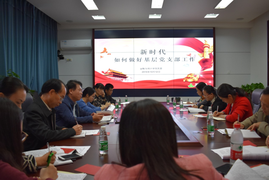 10月12日下午,在“不忘初心,牢记使命”主题教育扎实有序开展的关键期,海角 党委召开组织教工党支部工作培训大会。本次培训以《如何做好新时代基层党支部工作》为主题,由党委书记聂国军主讲,党委副书记刘周平、第三届教职工党支部支委委员参加会议。