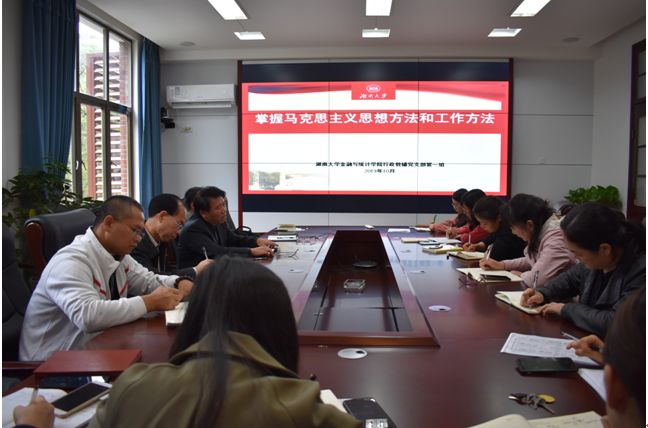 10月17日上午,为落实“不忘初心 牢记使命”主题教育的任务和要求,海角 行政教辅党支部在红楼226会议室开展了“党员干部人人讲党课,人人谈体会”的党课宣讲活动。行政教辅党支部第一党小组夏浩老师以“掌握马克思主义思想方法和工作方法”为题,为党支部20多名党员讲授了一场内容丰富的专题党课。学院党委书记聂国军、副书记刘周平参会。