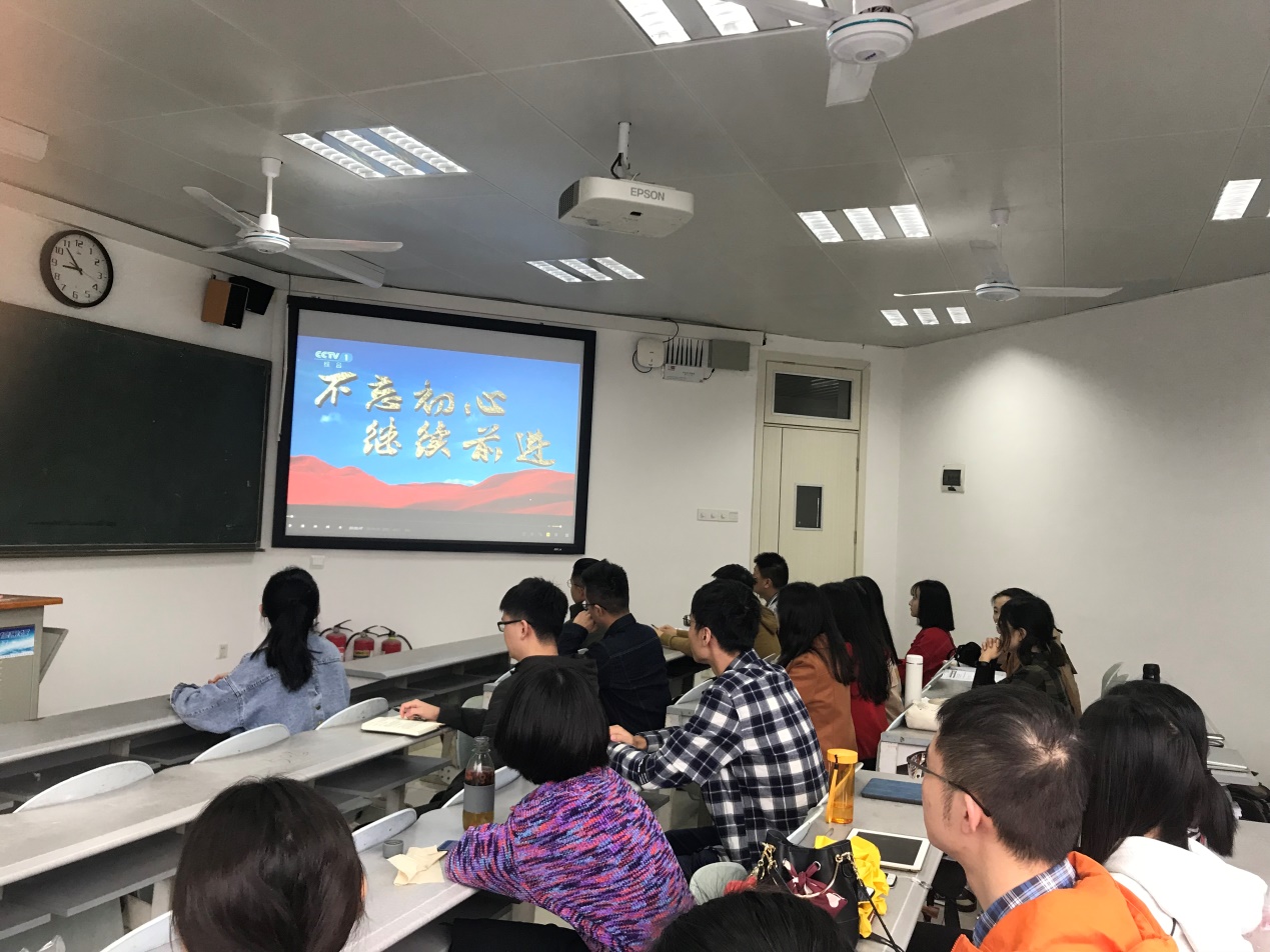 2019年10月15日,为了深入贯彻落实习近平总书记关于“不忘初心,牢记使命”主题教育的要求,进一步提高发展对象的党性修养。金统院研究生会党总支在水教504,面向全体研究发展对象召开观看主题片《不忘初心、继续前进》及对“共产党员的责任与担当”专题讨论会。