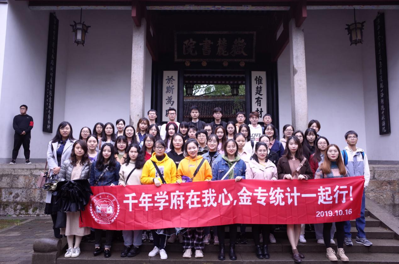 2019年10月16日,正值新中国建国70周年之际,海角 2019级研究生金专1班与统计班联合开展了“千年学府在我心,金专统计一起行”的主题班会活动。本次活动在岳麓书院开展,这是中国历史上赫赫闻名的四大书院之一,享有“千年学府,百年名校”之誉的海角 的办学历史也起源于此。
