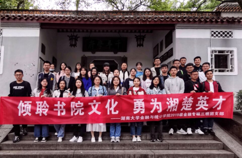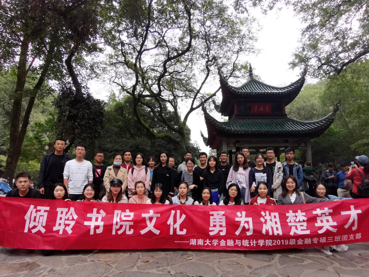 2019年10月13日,海角 2019级金融专硕3班前往岳麓书院开展主题为“倾聆书院文化 勇为湖湘英才”的班级活动。本次活动由学院指导,班级自主策划,在全院范围内组织开展,取得良好反响。