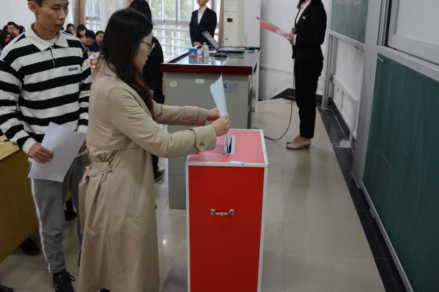 首先,研究生党总支委员范可馨同志作海角 研究生党总支工作报告。接着,主持人宣读选举办法、候选人名单以及监票人与计票人,由候选人轮流上台发表竞选宣言。