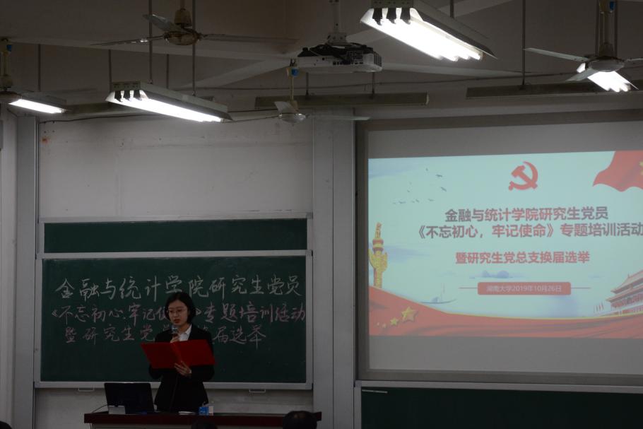 2019年10月26日上午,海角 研究生党员专题培训活动暨研究生党总支换届选举大会在海角 财院校区二教401顺利召开。海角 党委副书记刘周平老师、研究生党总支书记苏雅倩老师出席会议,全体研究生党员与会。