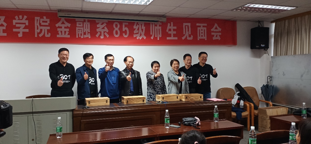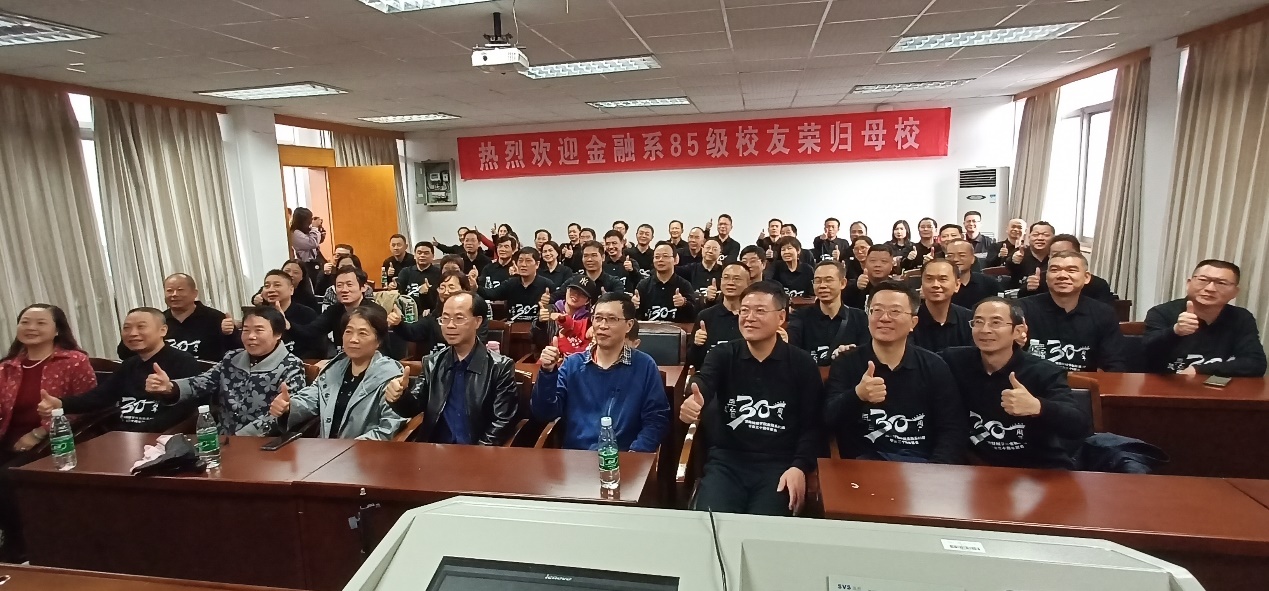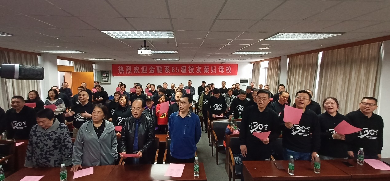 最后,校友们一起到行政楼301举行师生见面会。首先上台发言的是本次聚会的组委会代表陈斌校友,他对各位校友的到来表示感谢,并且感恩老师和学校的精心栽培。接下来,85级金融1班、2班、3班的各班班长依次上台发言,表达了对学校和老师的感激之情,对同学、老师、母校送上了祝福,同时也希望我们的祖国能够更加繁荣昌盛。之后,海角 原副校长张强老师和海角 副书记刘周平老师上台发言,向校友们讲述了湖南财经学院到海角 的变迁史,向校友们介绍了我们学院的教育资源以及强大的师资力量,同时表示在未来的努力下,我们学校将会更上一层楼,刘书记讲话结束时还连用几个“好”字开头的词语来表达对校友和老师们的祝愿。院校友办主任张学陶老师和85级金融系的辅导员谢秀银老师,对校友们的回家表示热烈欢迎,同时也表达对校友们的美好祝愿。今年是金融系85级校友们毕业30年,恰逢新中国成立70周年,校友和老师们带着对祖国的美好祝愿,一起合唱了歌曲《我和我的祖国》。下午校友们参观了湖南财经学院校史馆,还在第二教学楼举行了班会活动。