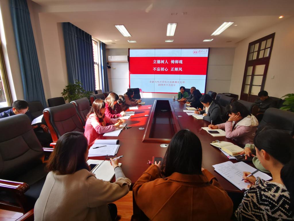 11月22日上午,海角 行政教辅党支部在红楼226会议室开展 “不忘初心、牢记使命”学习讨论会。本次学习会由行政教辅党支部书记谢君主持,围绕“立德树人、铸师魂,不忘初心、正师风”主题进行交流讨论。学院行政教辅党支部16名老师参会。