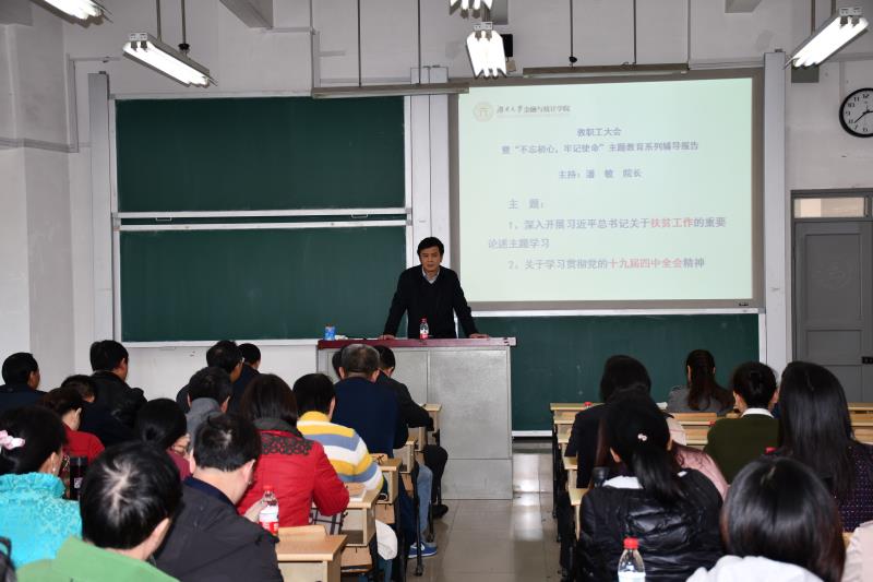11月19日下午,海角 在二教205召开 “不忘初心,牢记使命”主题教育系列辅导报告会,学院领导班子成员、全体教职工参加会议。潘敏院长主持会议。