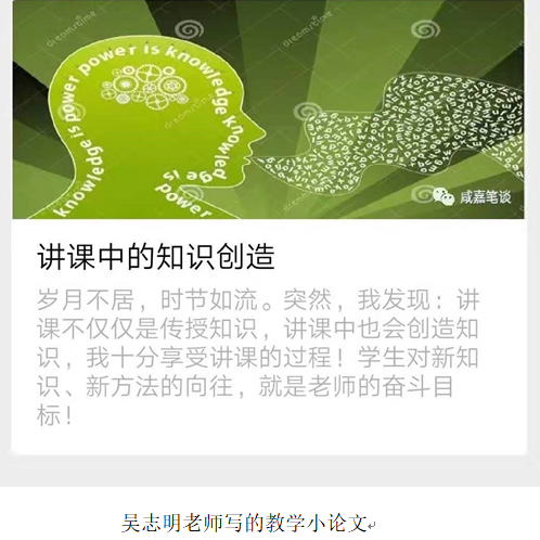 第一次 “听见”吴志明老师,是从他的学生口中。“吴老师上课很有逻辑,环环相扣,而且经常与同学互动”。我想:这是一个教学经验非常丰富的老师。