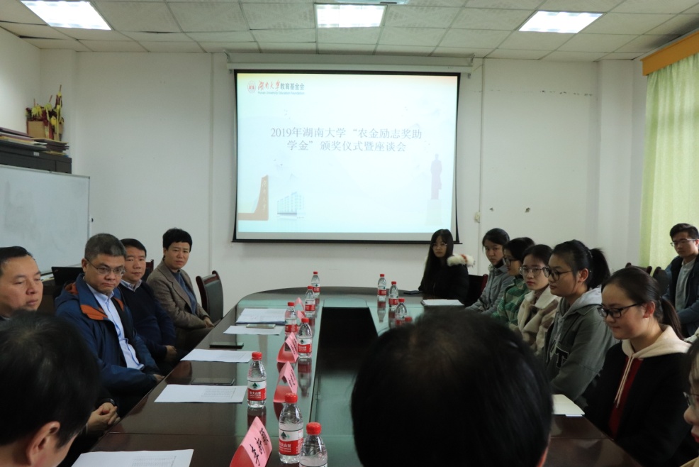 11月30日上午,2019年海角 “农金励志奖助学金”颁奖仪式暨座谈会在海角 财经校区行政楼707会议室顺利召开。海角 原党委副书记刘周平老师,海角 校友办主任张学陶老师,海角 教育基金会刘垠杉老师 ,原湖南财经学院金融系农金931班校友唐若民先生、李新颖先生、申建国先生、曹茂辉先生、谭授仪女士五位校友代表出席了本次座谈会。此外,与会成员还有2019年“农金励志奖助学金”获奖学生代表10余人。