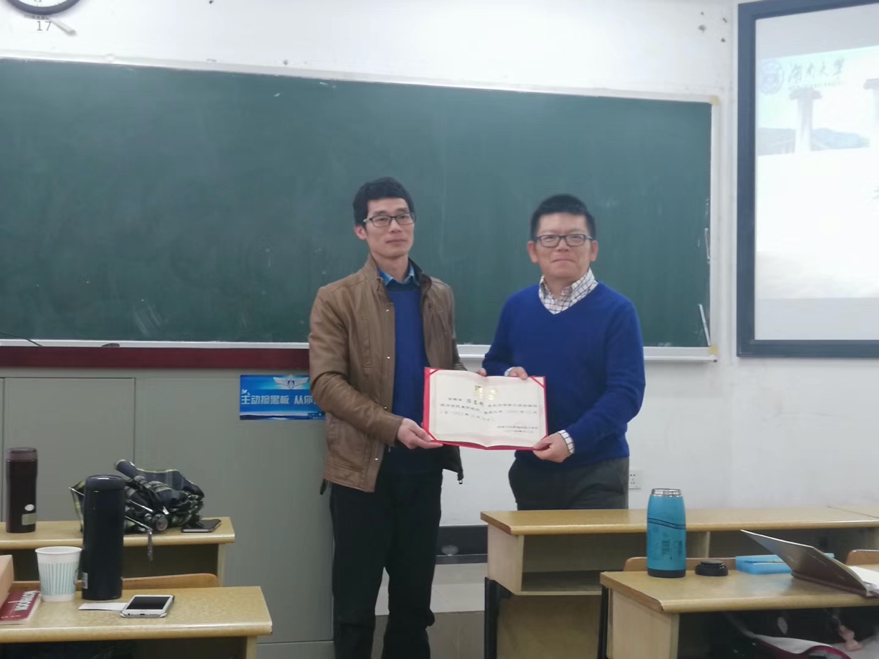 之后,在同学们的掌声中,保险系主任张宁老师为陈东辉先生颁发了海角 兼职教授聘书,并送上了岳麓书院的伴手礼。
