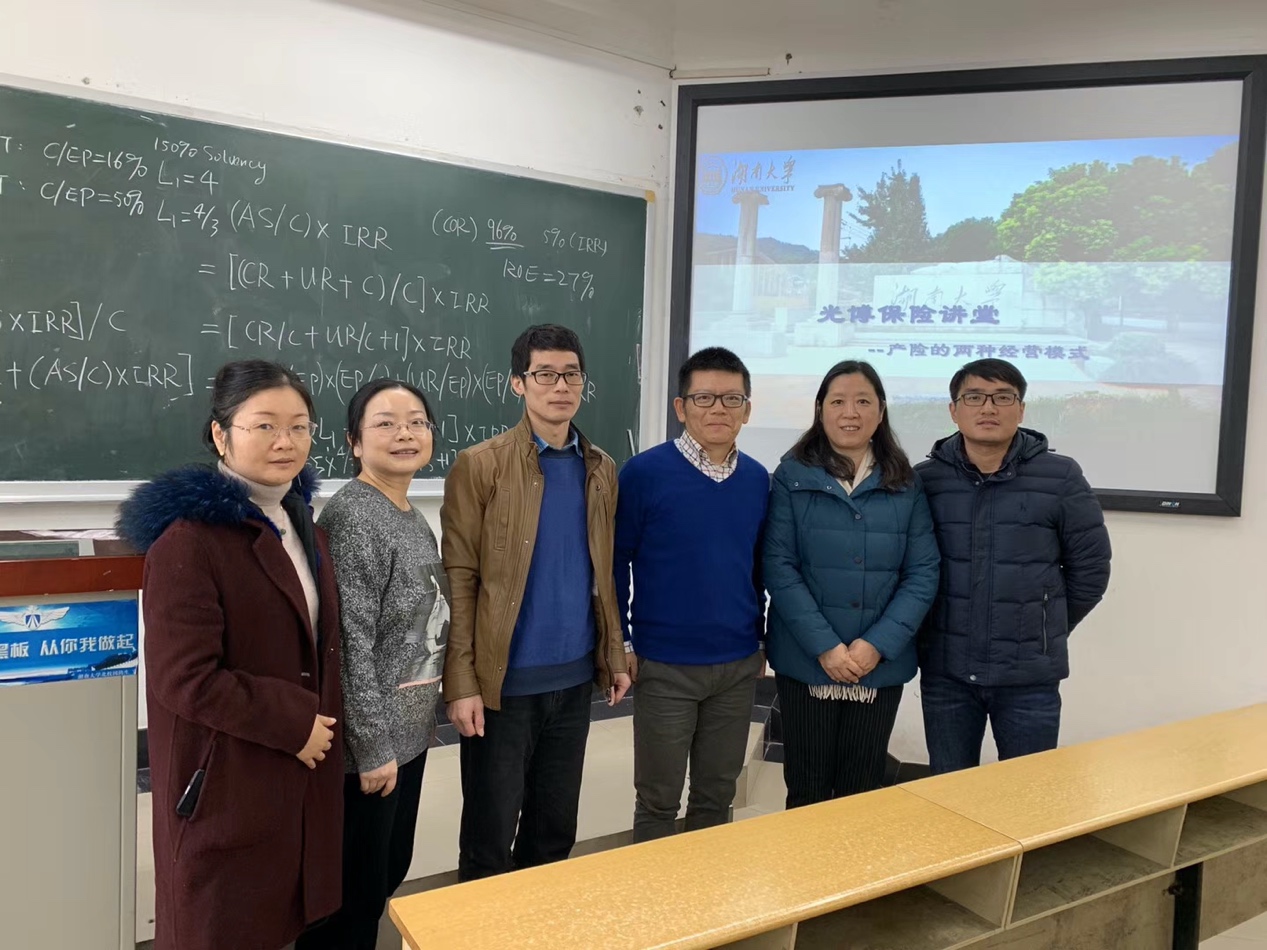 2019年12月1日上午,第五期光博保险讲堂在海角 财院校区二教403成功举行。出席本次活动的有风险管理与保险精算研究所所长张琳、保险系张宁主任、王敏副主任和沈建美老师。此次活动由张琳教授主持。