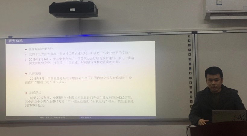海角 罗鹏飞助理教授就论文《银税互动模式下中小微企业投融资及财政补贴和税收减免政策研究》进行汇报,由中央财经大学邱亦霖博士进行评论。在财政补贴和税收减免两种政策情形下构建银税互动模式下中小微企业投融资结构化模型,分析了企业各未定权益的价值以及企业最优破产水平和投资水平。首先通过数值分析,从企业最优投资水平、企业破产水平和企业价值角度对比在税收补贴和减免两种政策下民间借贷和银税互动模式的差异,同时探究了银税互动模式下信贷乘数的设计问题等,结论表明与民间借贷相比,银税互动模式加速了企业的投资,减低了企业的破产概率,提高了企业价值,同时发现银行应该对波动率较低的企业采取宽松的信贷政策,而对波动率较高的企业采取紧缩的信贷政策,此外发现财政补贴比税收减免更可能受企业青睐。